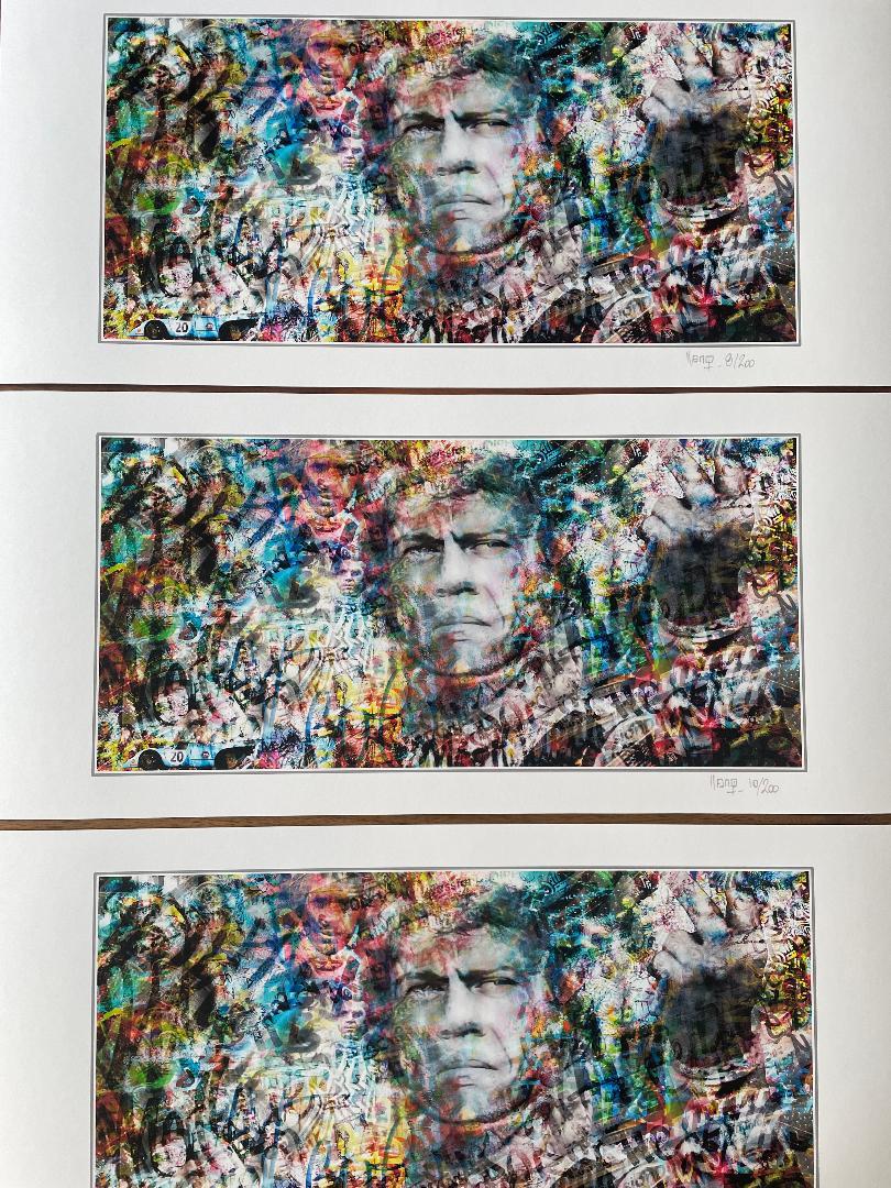 "Une oeuvre pleine de peps dans laquelle vous pourrez retrouver des détails cachés sous forme de jeux d'optique autour de Steve Mc Queen, de sa 917#20, sans oublier le clin d'oeil aux 24h du Mans avec la présence du Dunlop !" - Produit officiel des 24h du Mans à l'occasion des 55 ans du film culte "Le Mans".